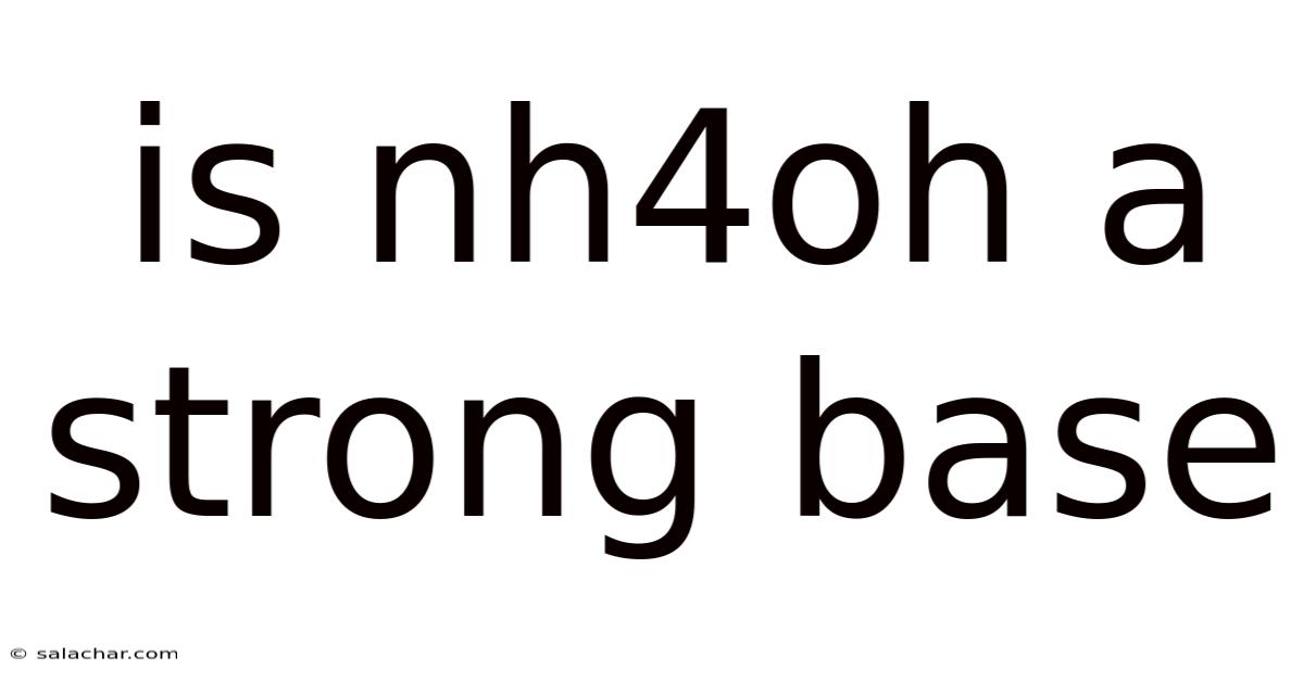 Many chemistry students encounter the formula NH₄OH and immediately wonder: is this a strong base? Here's the thing — this article will delve deeper into the chemistry behind this, explaining why it's considered a weak base, exploring its properties, and clarifying common misconceptions. The short answer is no, NH₄OH, or ammonium hydroxide, is not a strong base. Understanding the behavior of NH₄OH is crucial for anyone studying acid-base chemistry, solution chemistry, and various applications in industry and everyday life.